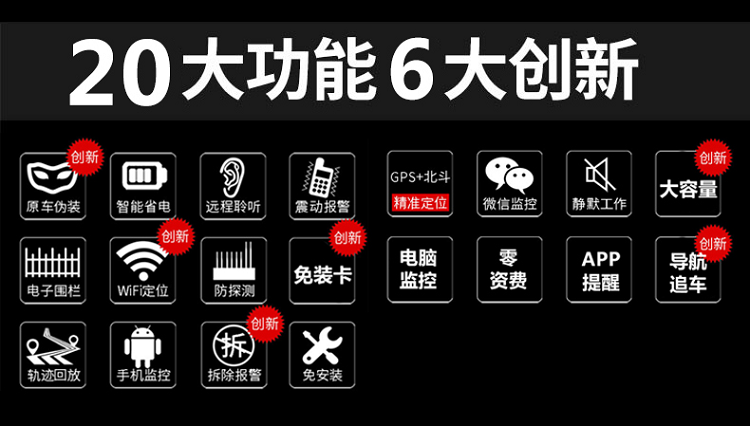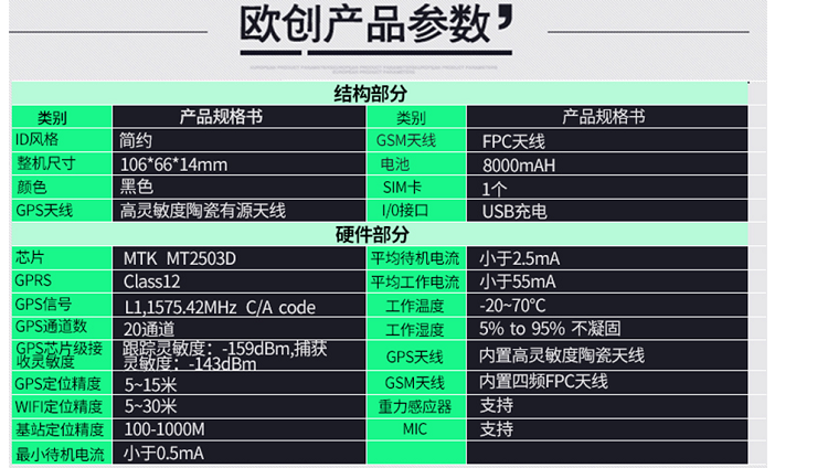 安裝:不用安裝,直接充電,充一次電用30天(通過調整回傳時間工作時間可以更長)北斗定位:屬于中國的衛(wèi)星,定位會比GPS準,誤差一般在5米內,但是覆蓋率不是非常的高,歐創(chuàng)芯片采用2503芯片兼容:北斗衛(wèi)星+GPS衛(wèi)星定位特點:定位會比單GPS更準