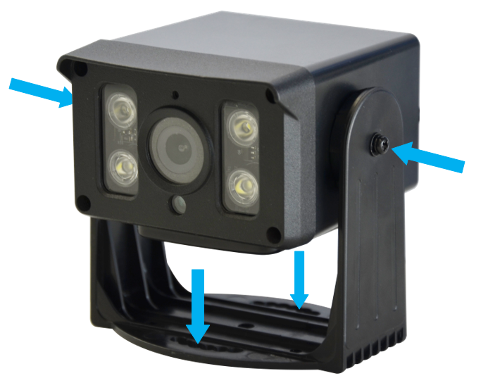 底座固定好后,將攝像頭卡在底座上,把畫面調(diào)整至需要監(jiān)控的區(qū)域后,鎖緊兩側(cè)螺絲,將攝像頭固定。
